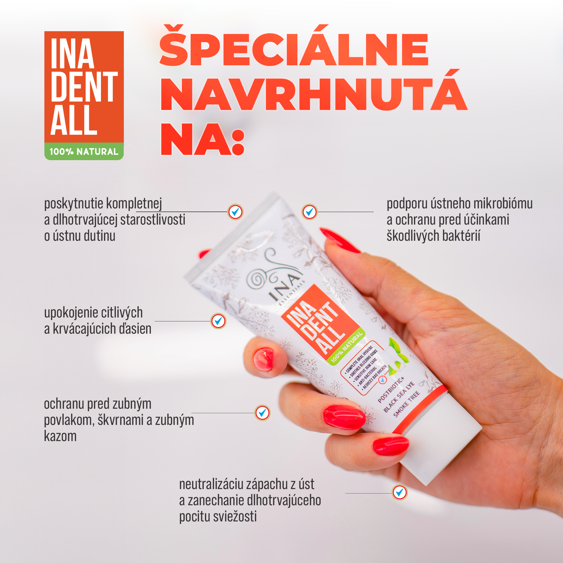 Pre optimálne výsledky a vynikajúcu ústnu hygienu používajte Ina Dent-All prírodnú zubnú pastu bez fluoridov v kombinácii s našou prírodnou ústnou vodou zo Škumpy vlasatej - Hydrolina - na Krvácanie ďasien a Zápach z úst.